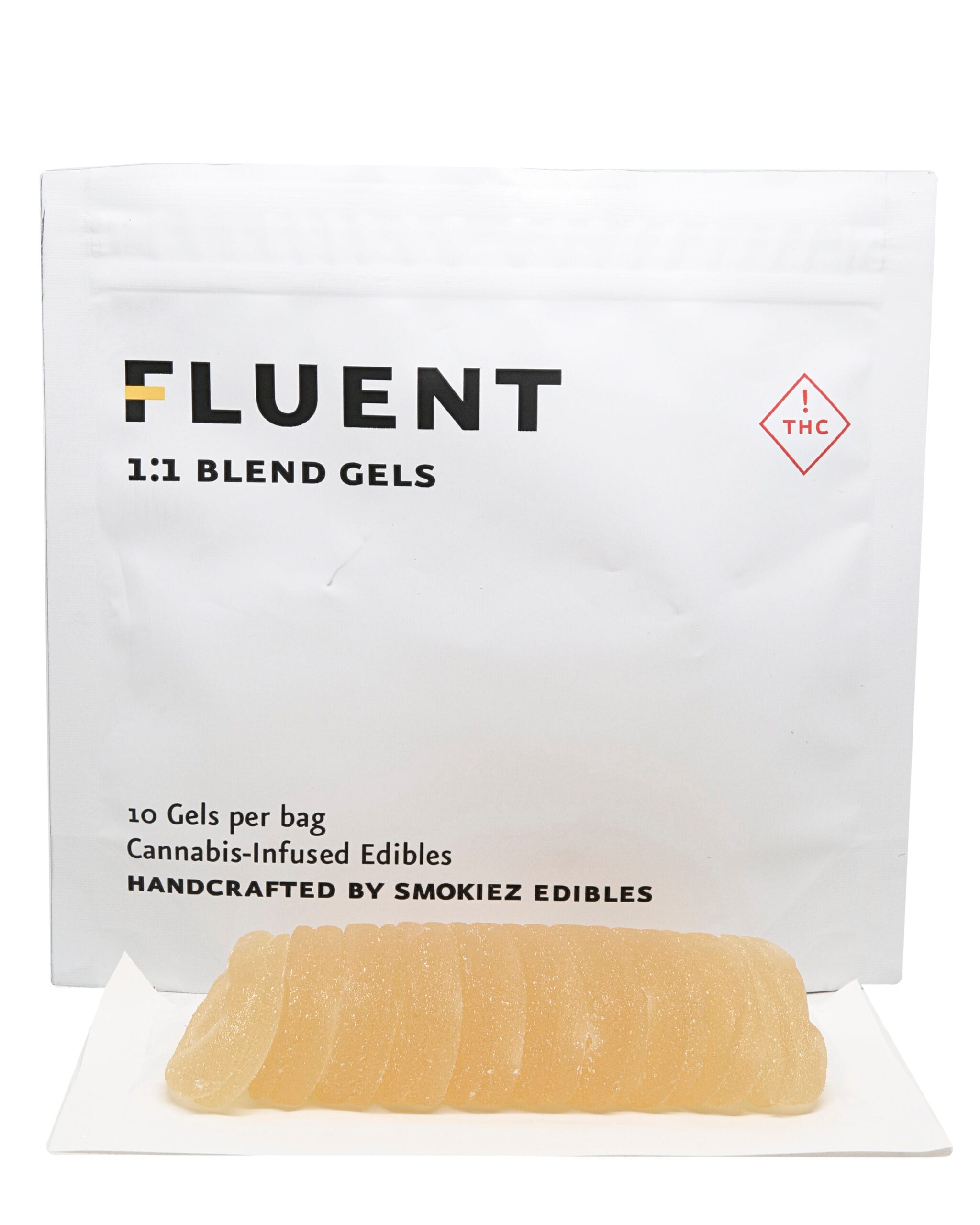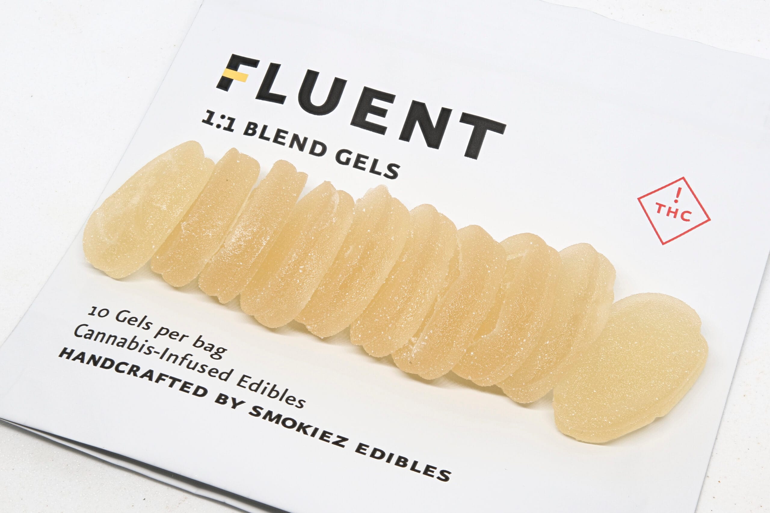 Smokiez 1:1 Sour Blue Raspberry Gels are soft, bite-sized gummies with a light yellow in color with a light sugar dusting. Each piece is evenly formed and easy to portion, supporting consistent dosing.