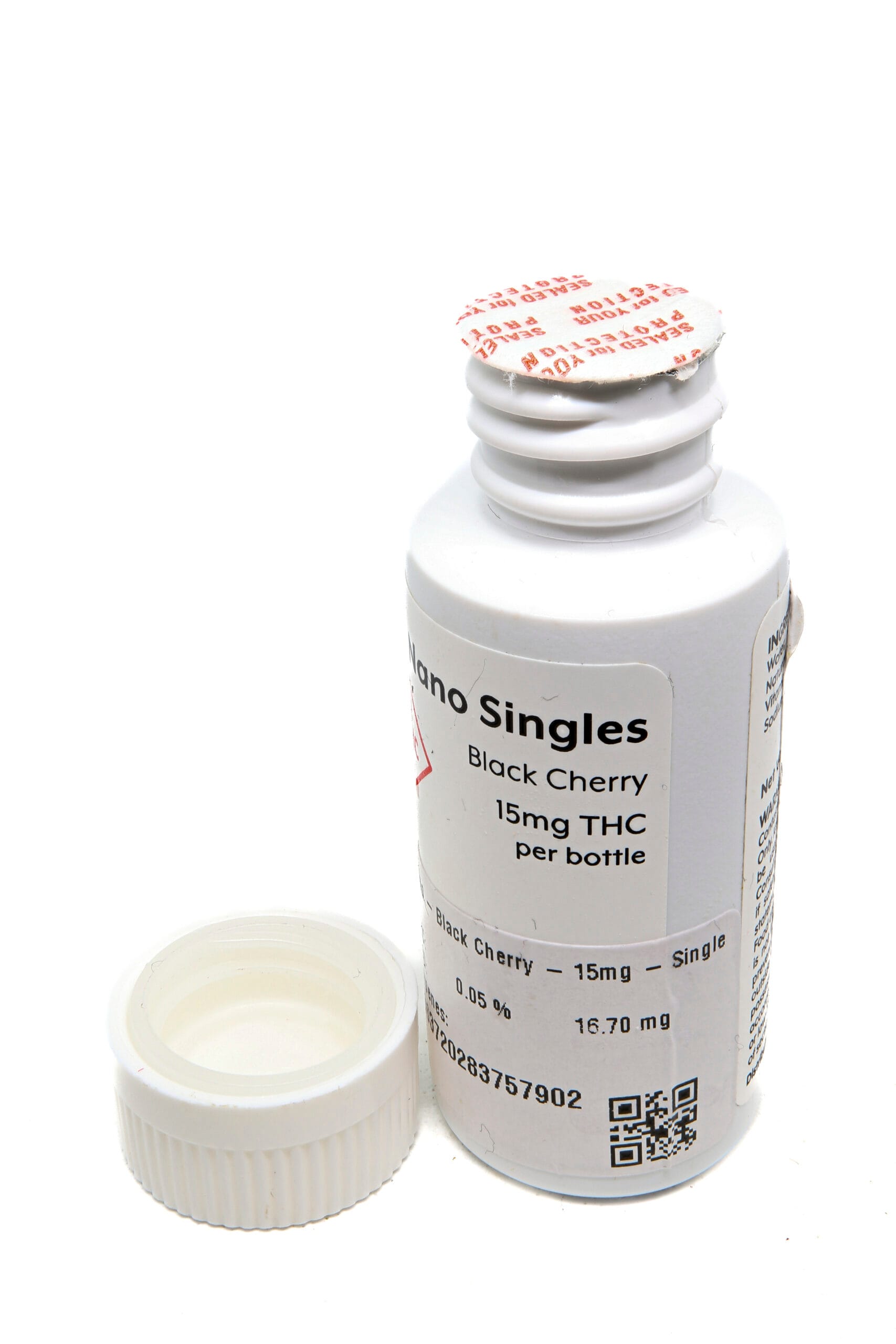Black Cherry Nano comes in a compact white bottle, sealed for safety with a child-resistant cap and inner tamper-evident seal.ย The liquid inside is a translucent orange hue, similar to that of ice tea.