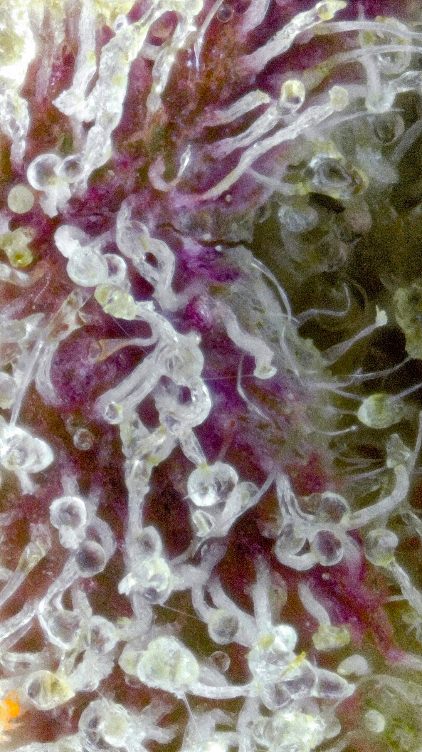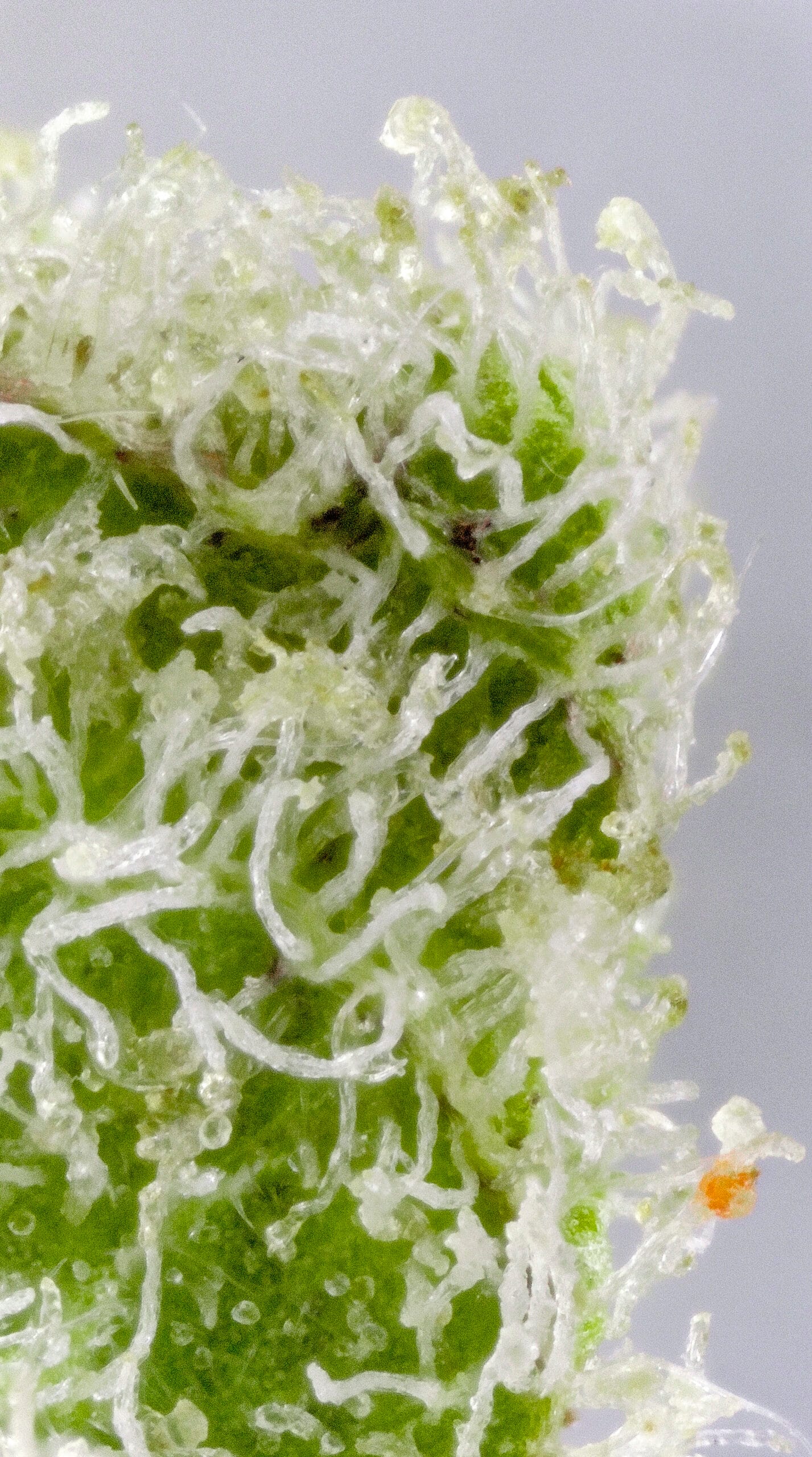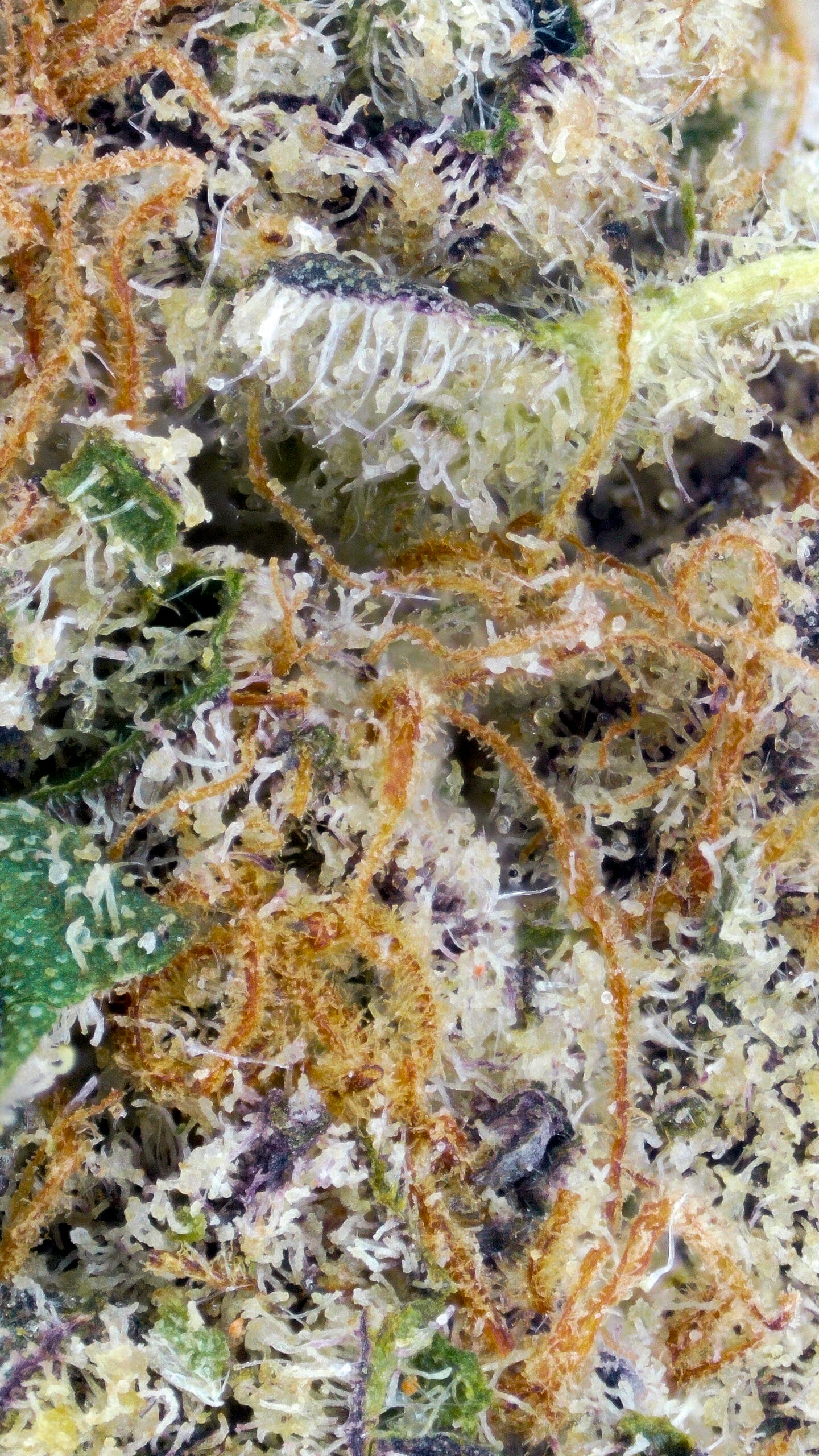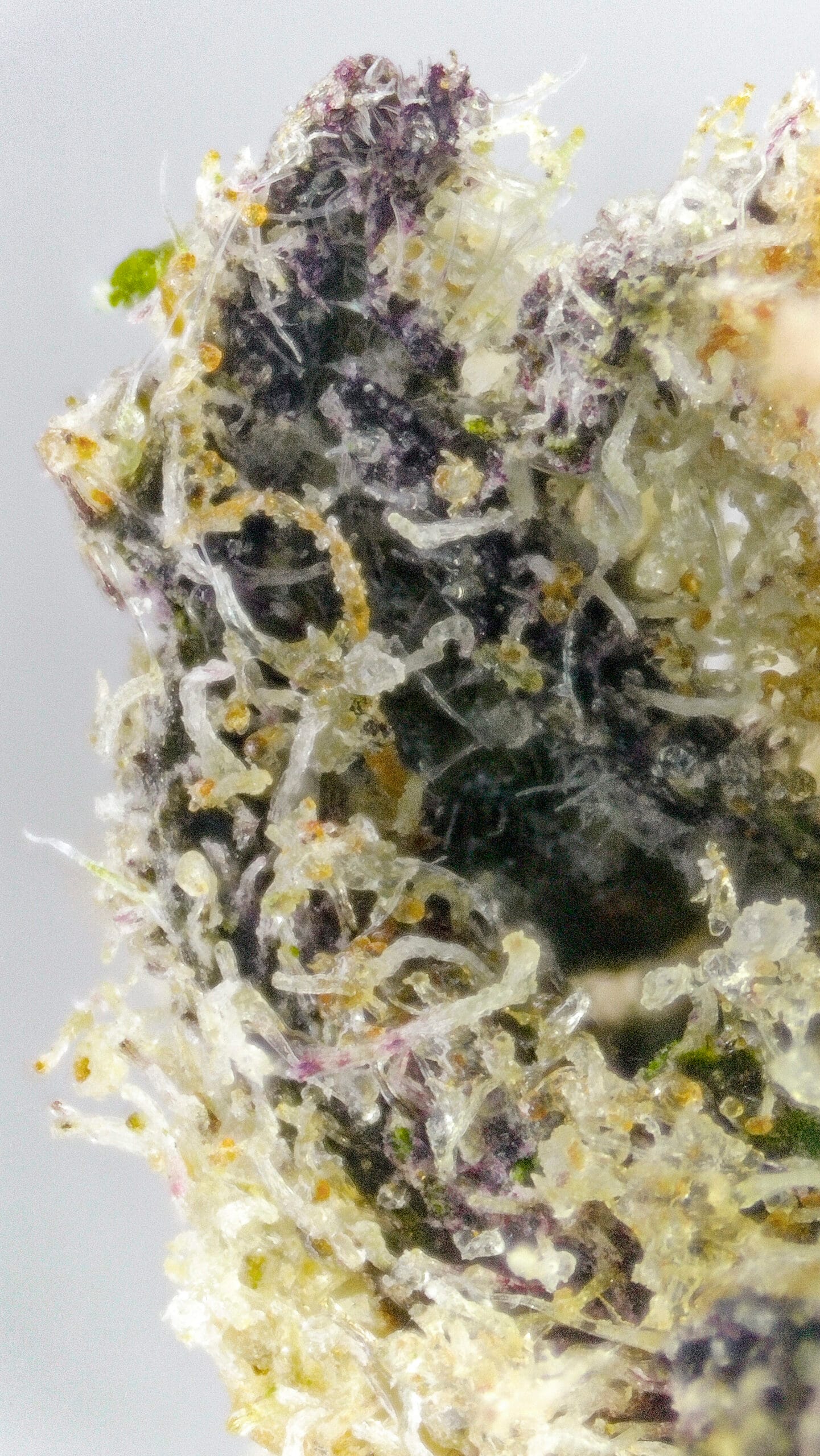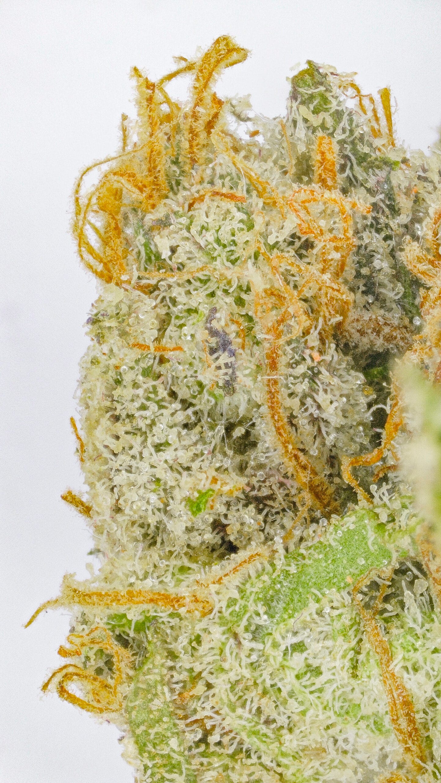 Dense, resin-coated nugs with dark forest-green tones, occasional purple accents, and a thick layer of sparkling trichomes—giving it a frosty “ice” look. It’s visually striking, even before you break it open.