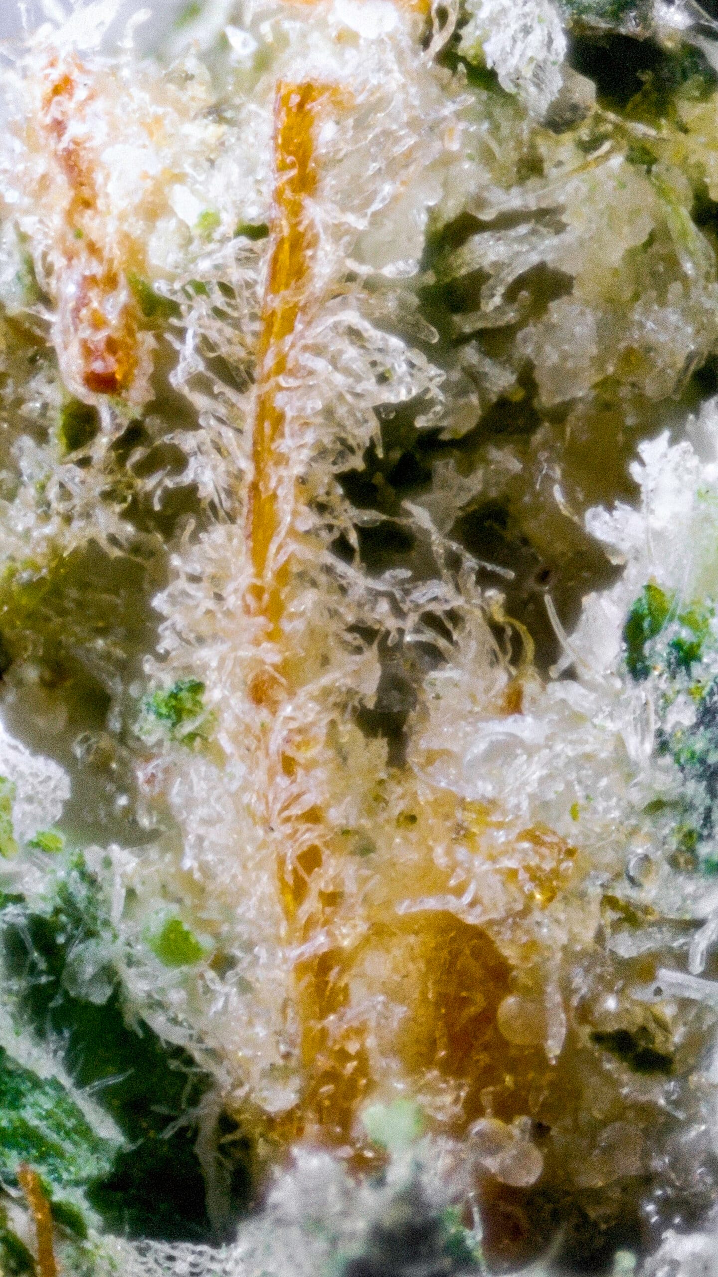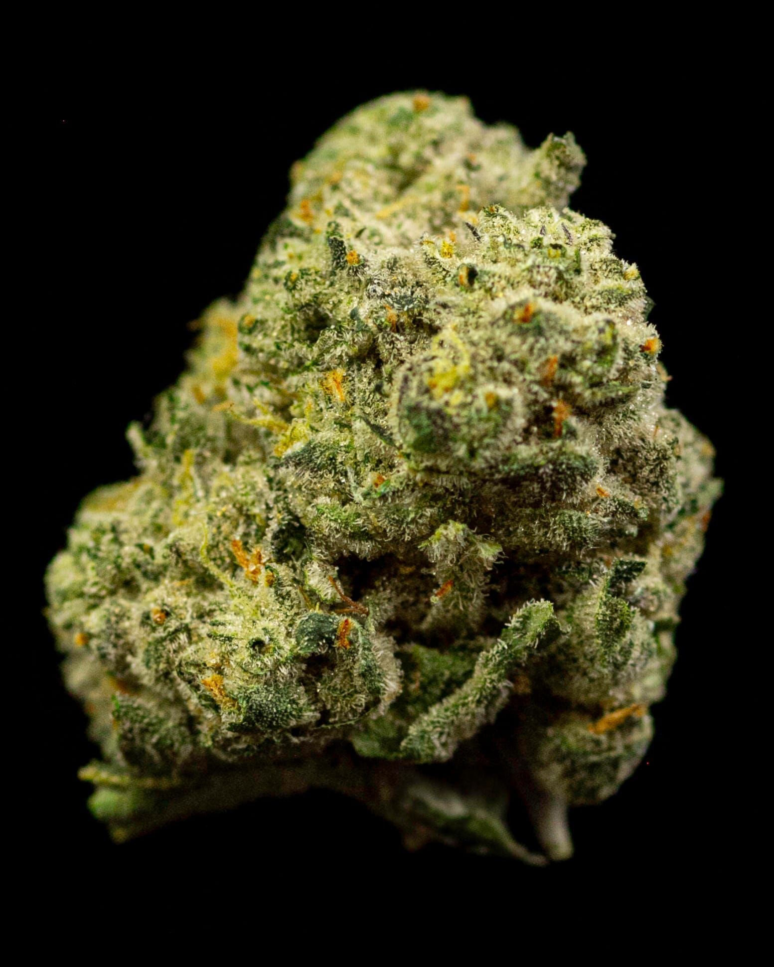 Thick, chunky buds with a deep olive hue, subtle purple accents, and a glistening sugar coat of trichomes. The structure was solid and well-trimmed, with tight formation true to its Platinum Cookies lineage.