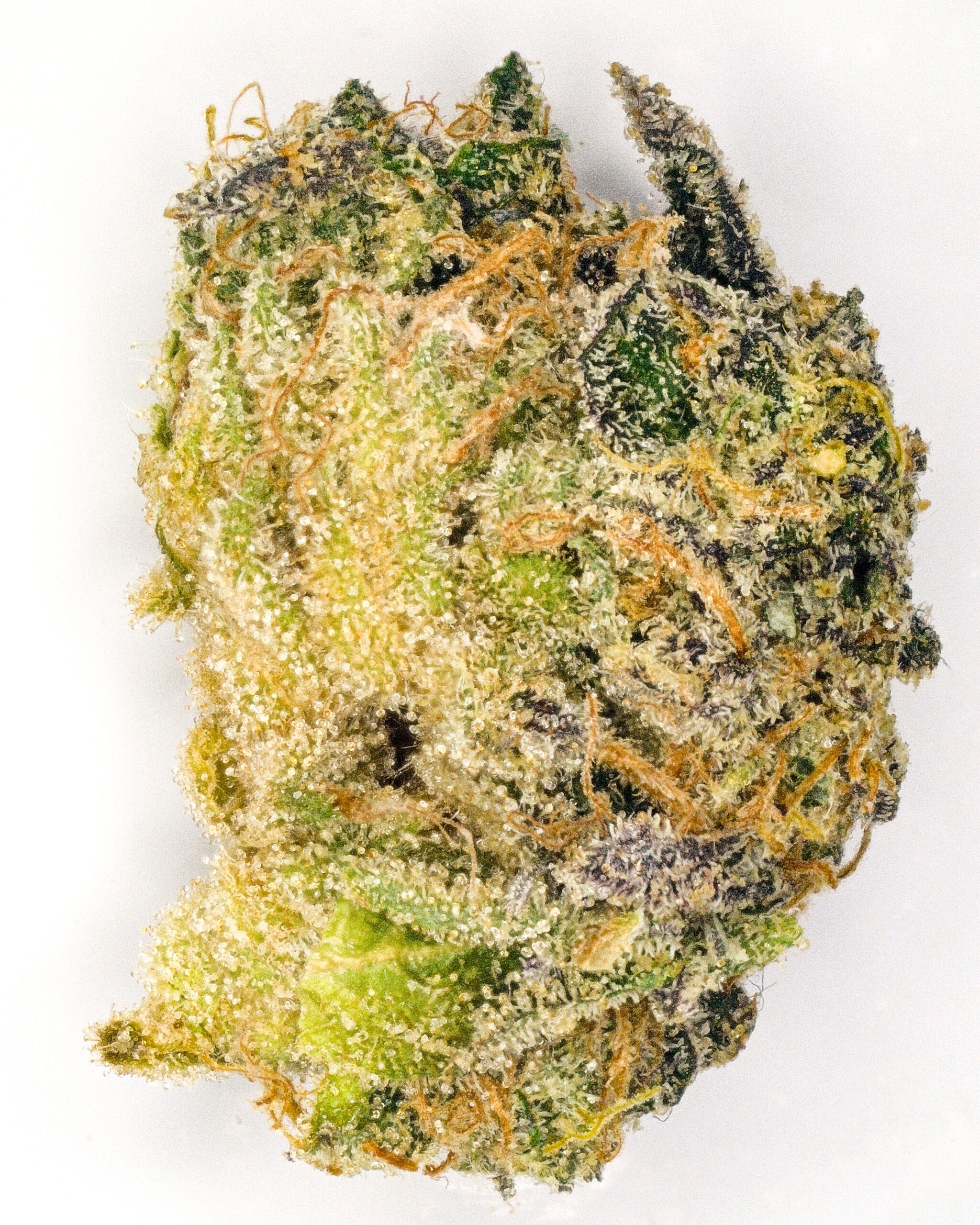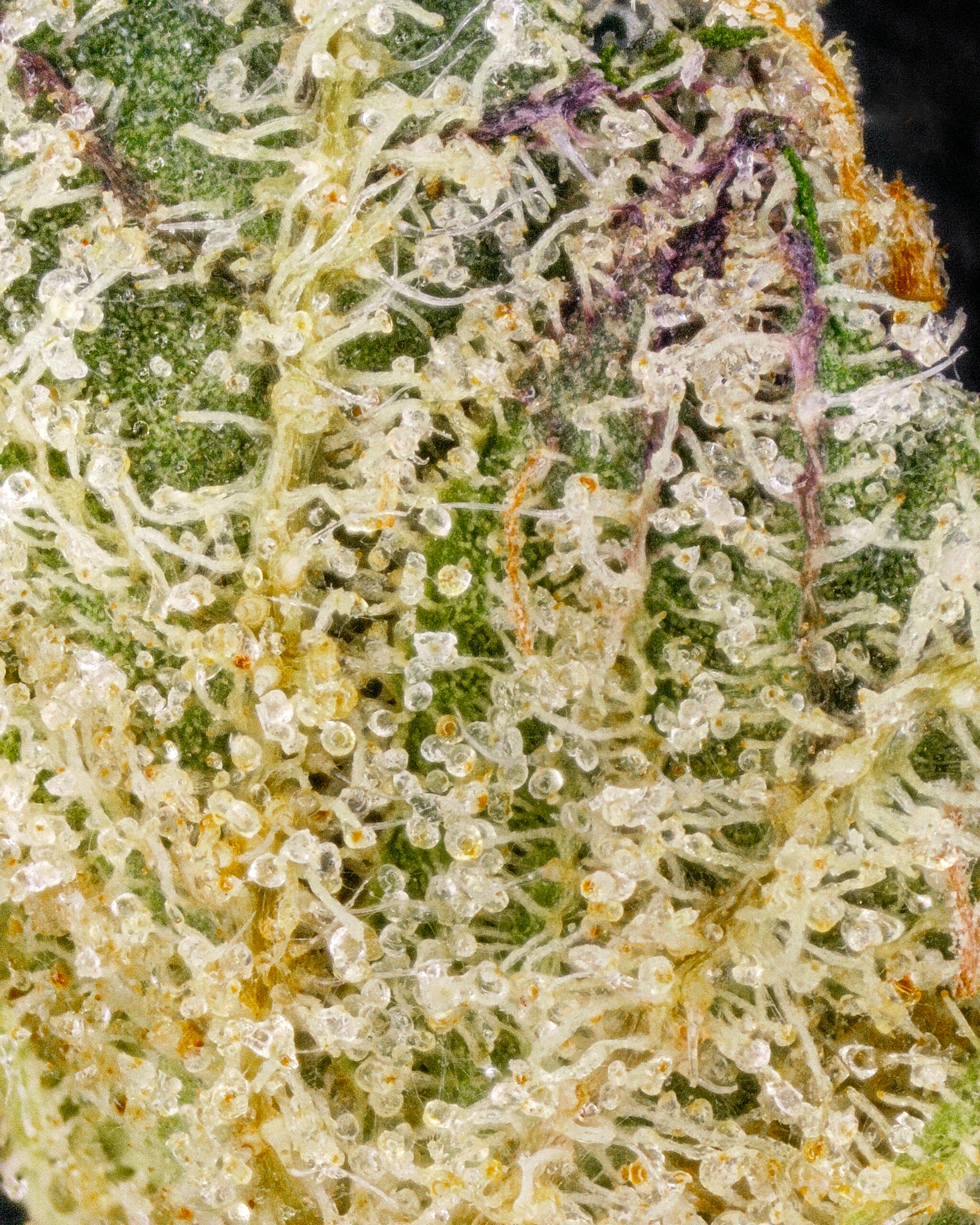 Cinnamon Milk presents dense, chunky buds coated in a light, sugary frost. Deep green and occasional purple tones sit beneath a layer of orange pistils. The structure is tight and well-trimmed, giving the flower a premium, handcrafted look that reflects Cookies’ typical presentation.