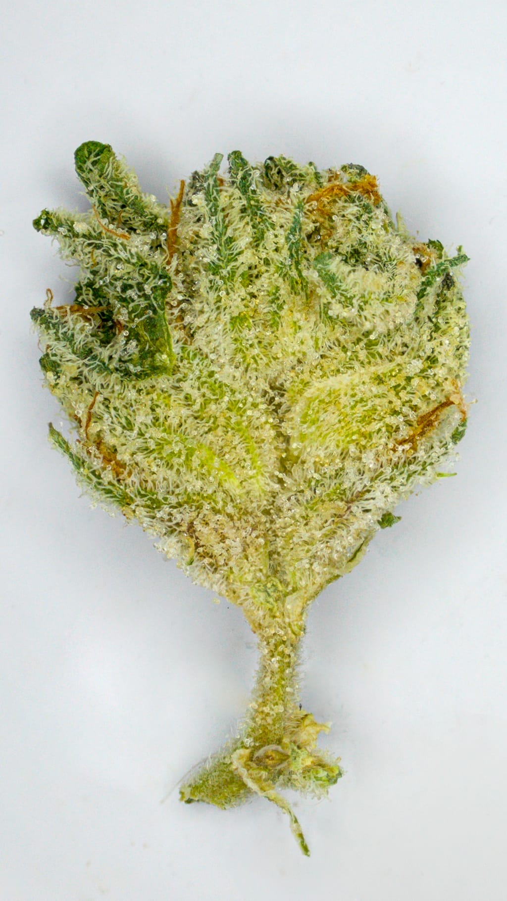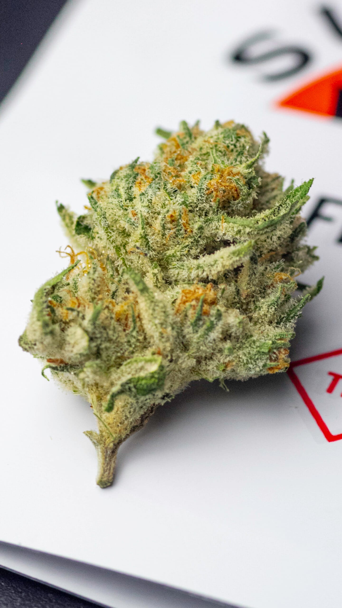 Dense, spade-shaped forest-green nugs with vibrant orange hairs and a thick veneer of amber and cloudy trichomes. This batch was perfectly cured and glowed under light—the kind that crushes cleanly with minimal crumble and maximum stickiness.