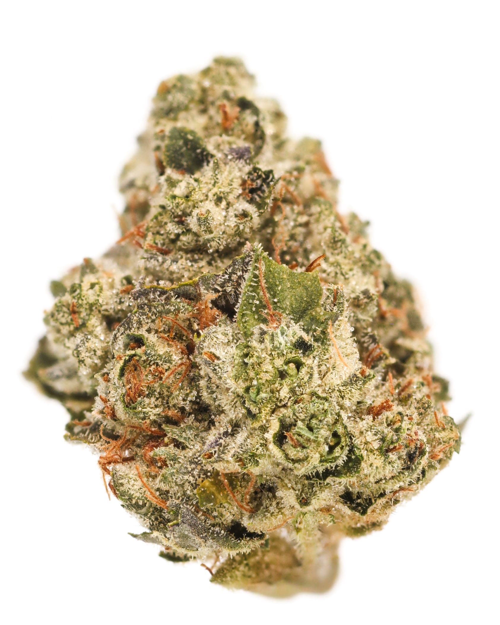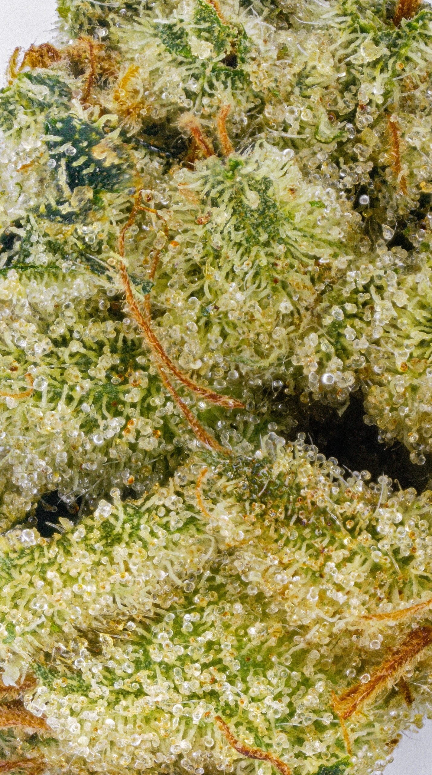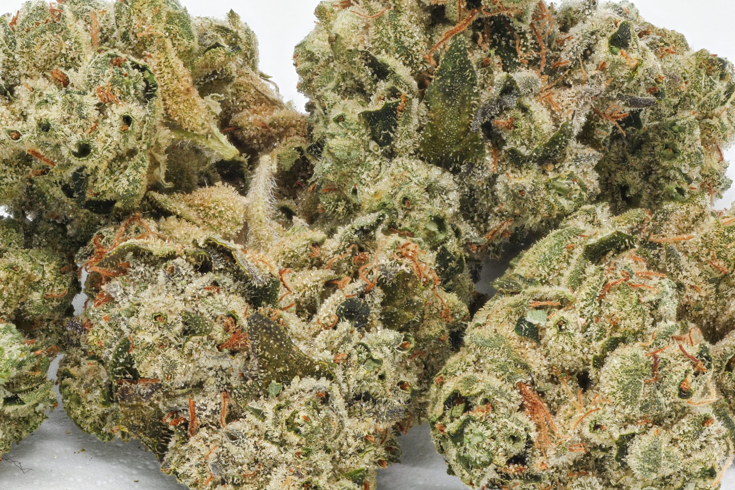 This batch of GMO Rootbeer presents dense, chunky buds with thick trichome coverage and dark, moody coloration. Deep olive greens and subtle purples sit beneath a heavy layer of frost, while burnt-orange pistils twist through the surface. The structure is tight and resinous, carrying the classic GMO ruggedness with a slightly more refined finish from the Rootbeer lineage.