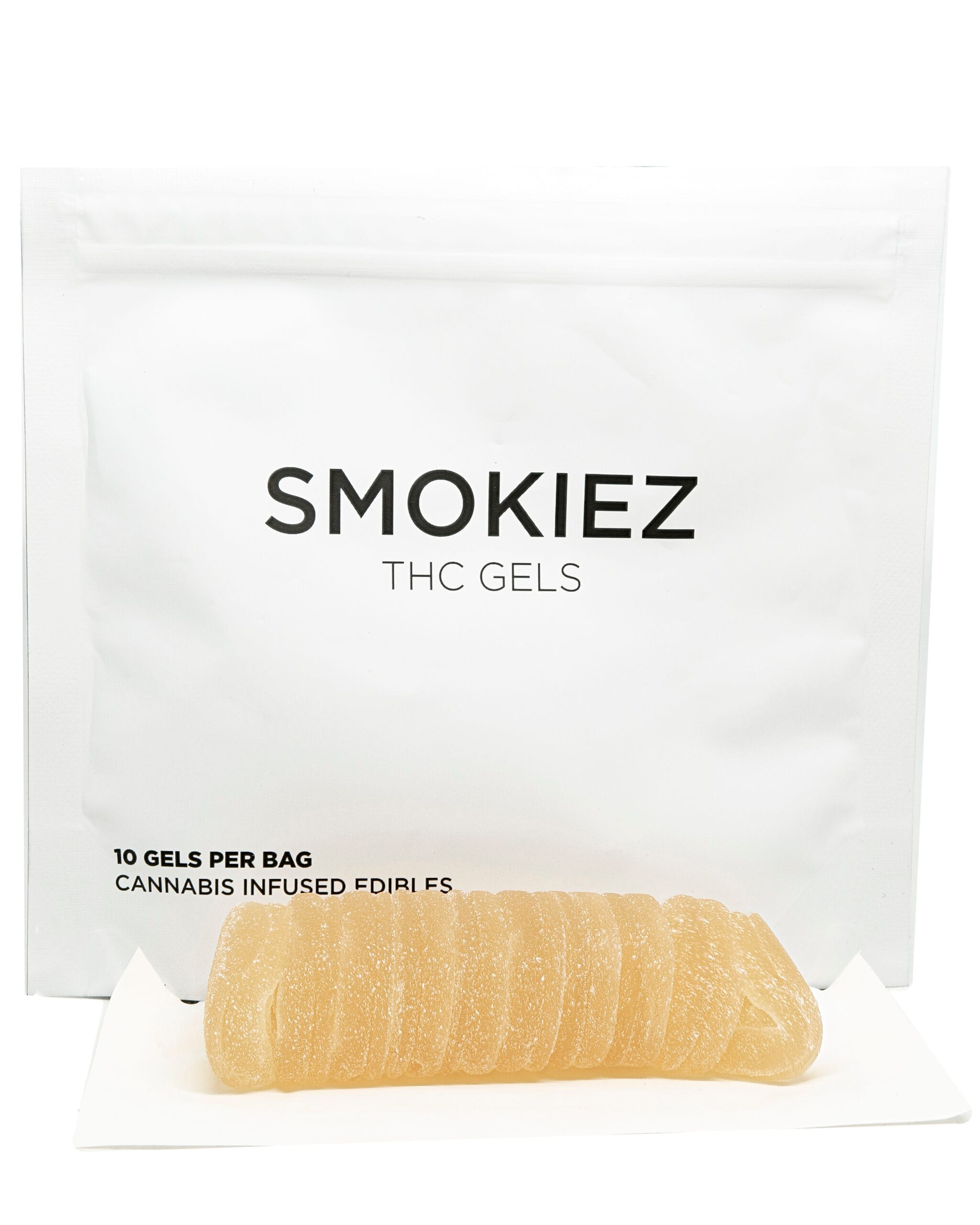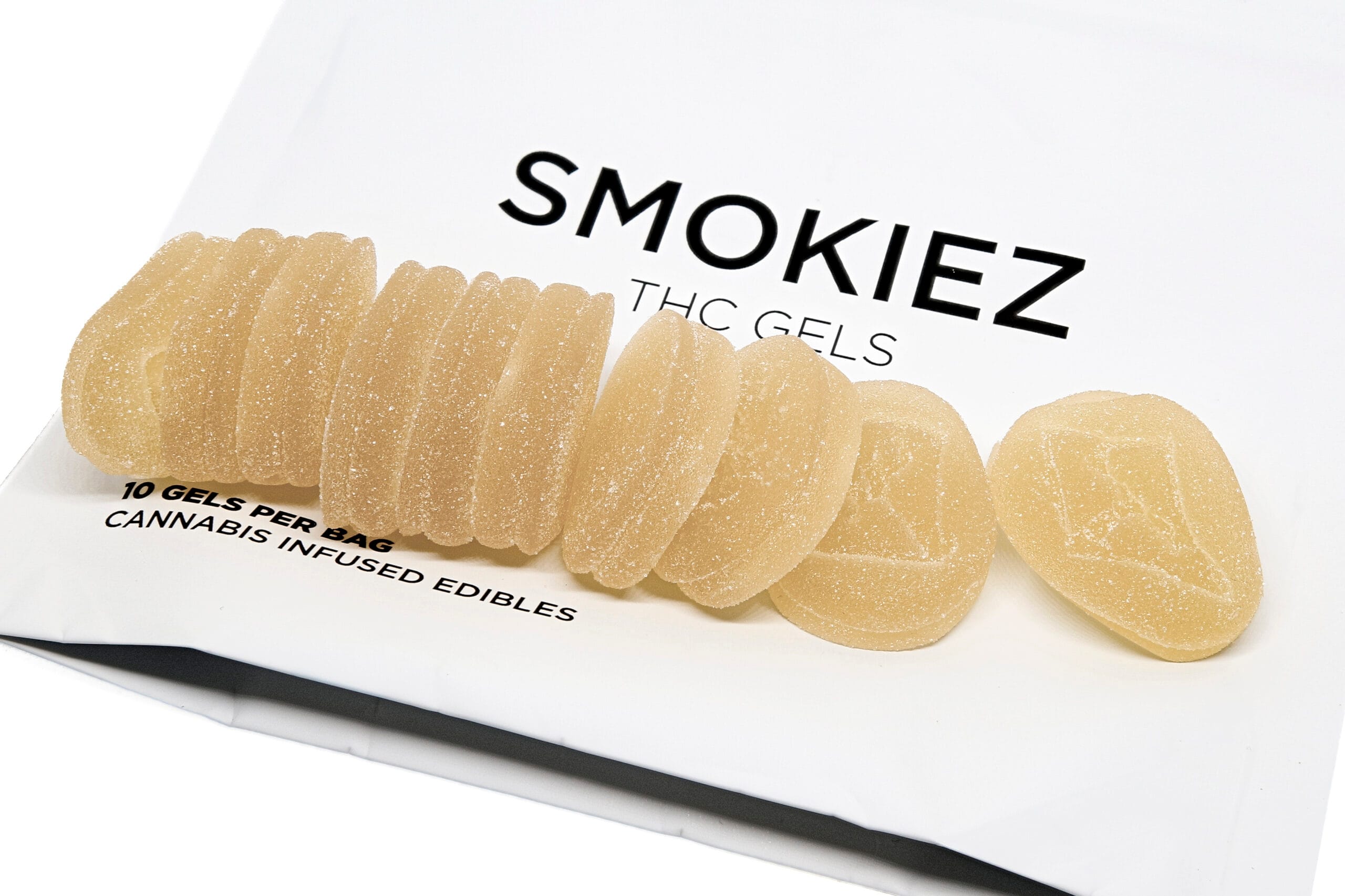 Smokiez Original Mango Gels are small, bite-sized gummies with a warm golden-yellow hue and a smooth, lightly sugared finish. Each gel is evenly shaped, making dosing simple and consistent.