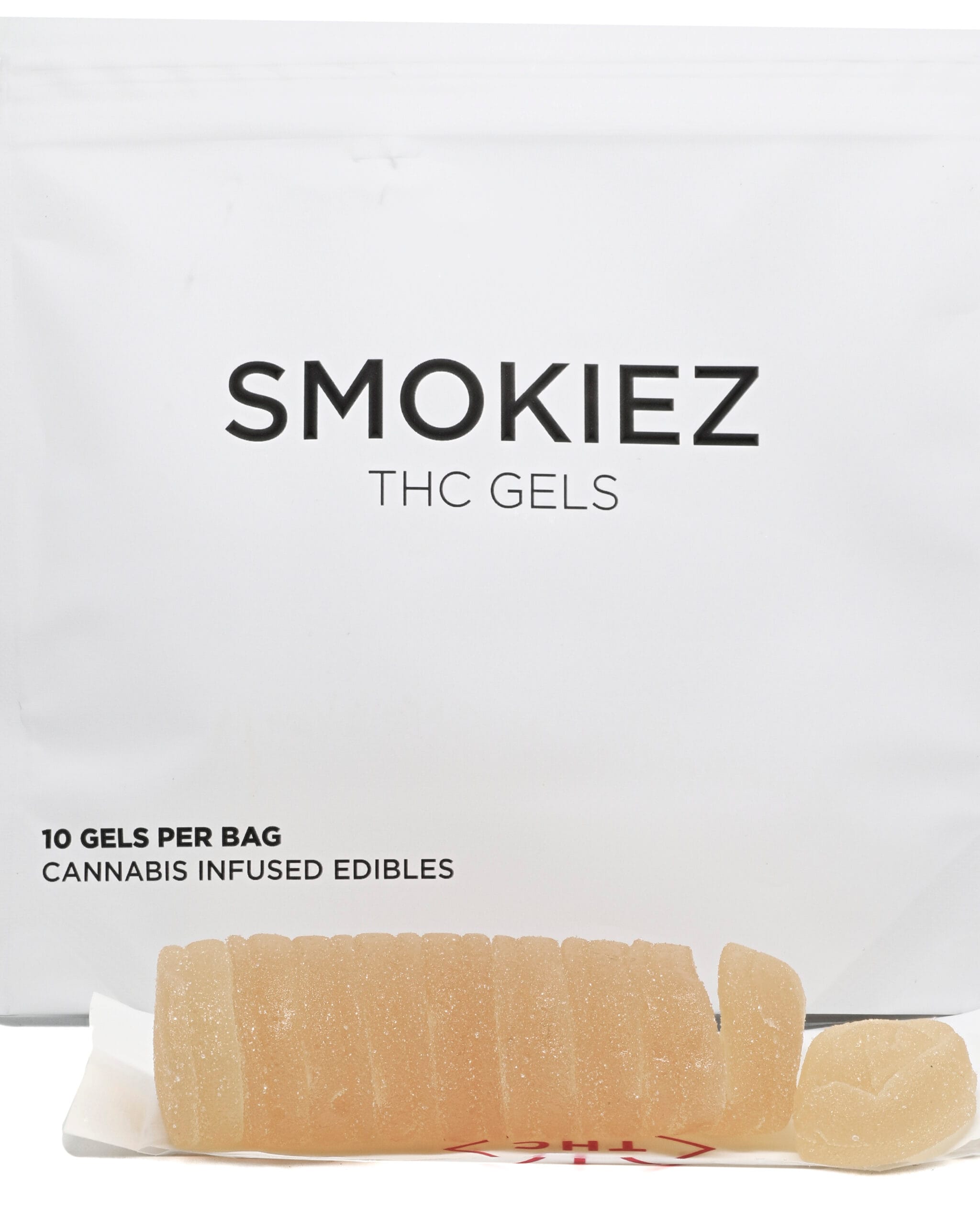 Smokiez Original Peach Gels are small, bite-sized gummies with a translucent peach-orange color and smooth, glossy finish. Each gel is evenly shaped and easy to portion, making dosing straightforward and consistent.