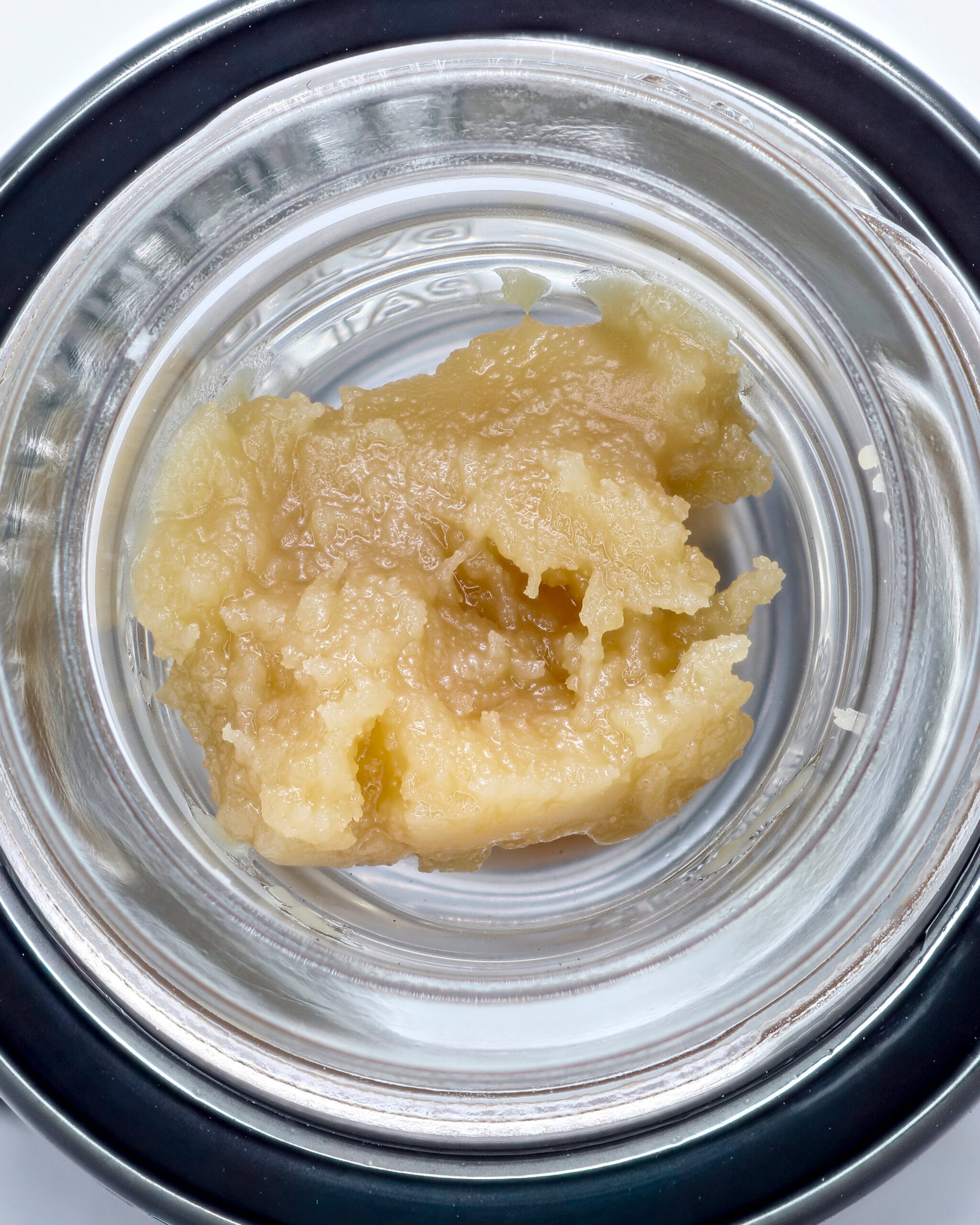 Pineapple Donut Live Rosin has a clean, buttery texture with a glossy finish. The consistency leans soft and pliable, making it easy to scoop and work with while still holding shape.