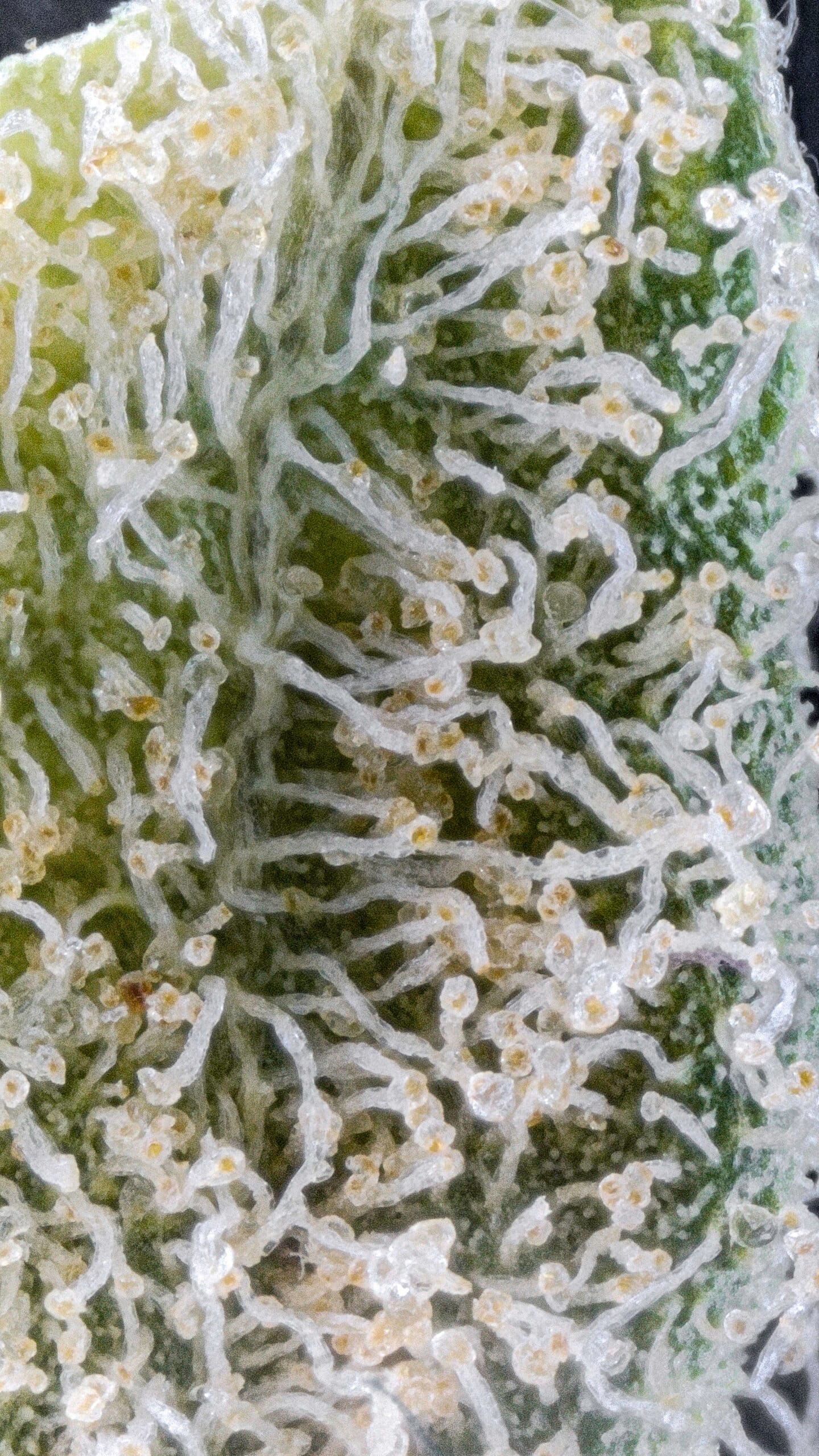 Medium to large nugs with a tight, dense structure. The vegetation is bright lime green, accented by fiery orange hairs and a generous layer of sticky, resinous trichomes—consistent with ShaunCron’s quality standards.
