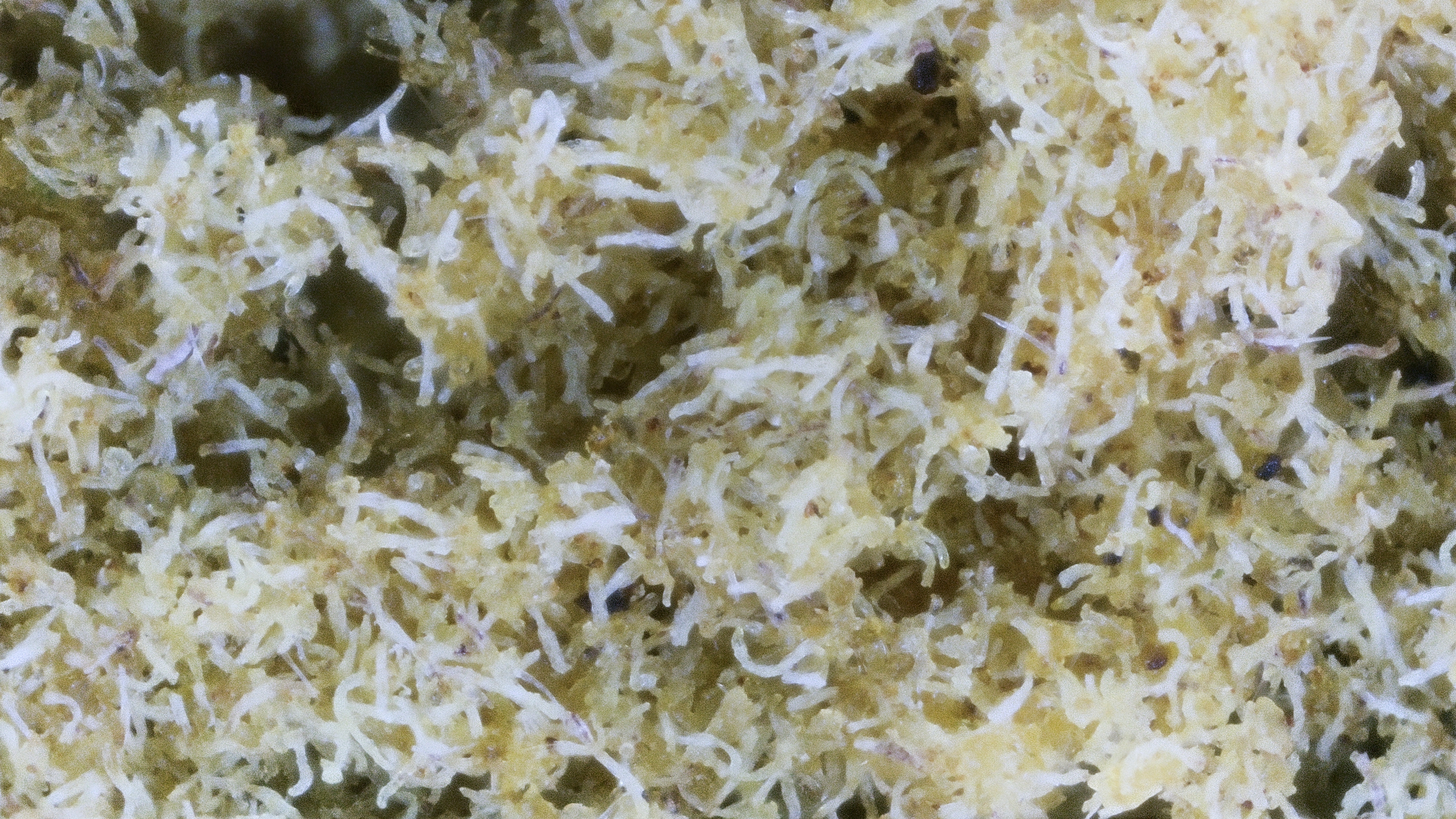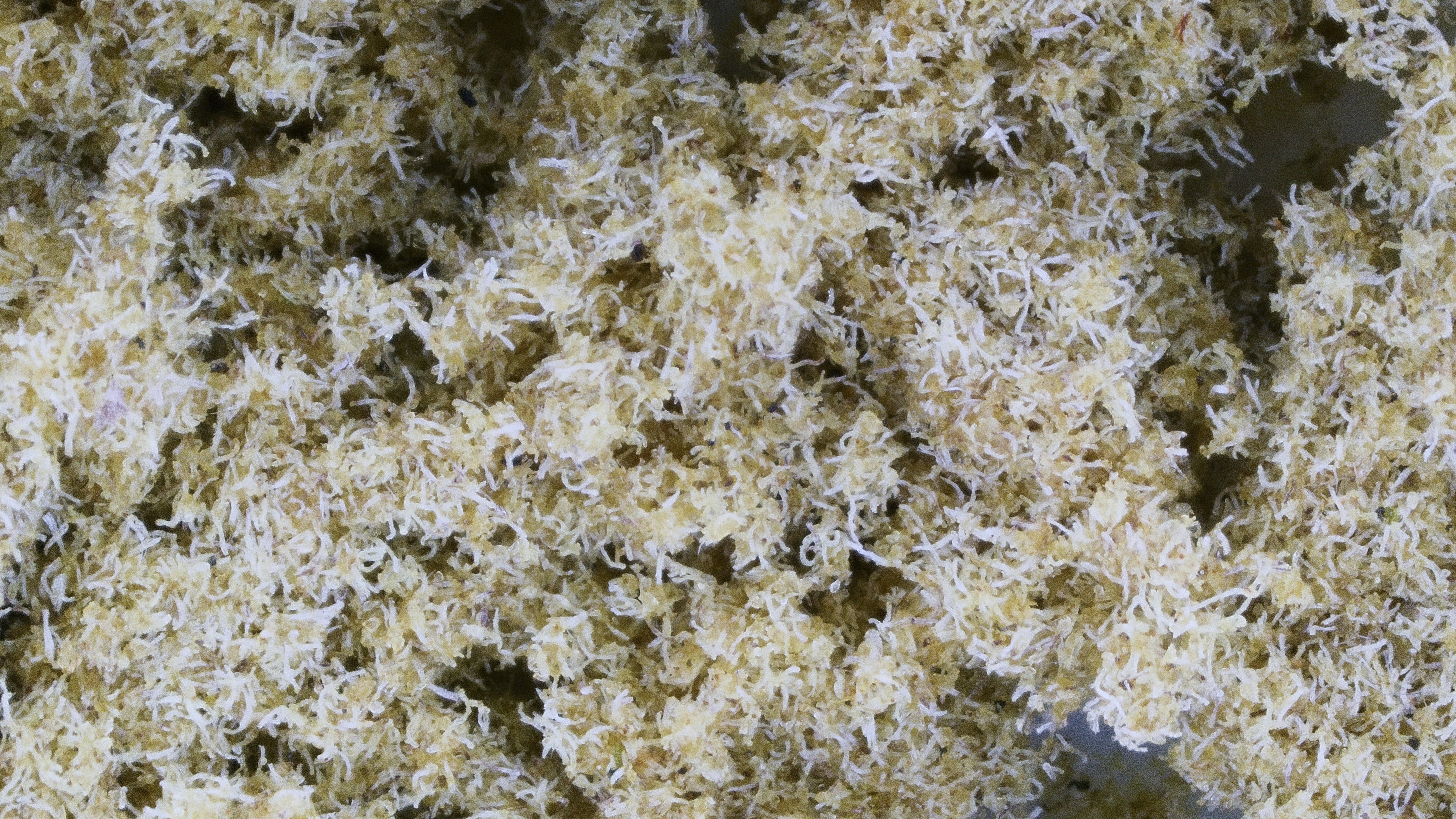 Dark warm amber color of beach sand is best description of the kiefs overall appearence. Despite its small size and clumped presentation, the dense trichome coverage stands out as crystalline and visually striking.